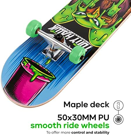 Perfect for All Riders: This 31 inch skateboard gives you just the right balance of convenience, safety, and stability. Portable and lightweight: Thanks to a sturdy wooden build coupled with the lightweight, our skateboard for cruising makes the perfect companion for your outdoor trips and travels; it's easy to carry around making it ideal for anyone that wants to skate anywhere they want Sturdy and stable build: The complete skateboard deck is made using durable and sturdy maple wood to add strength and stiffness while also gives it a stylish flair; it offers more traction for your feet and gives better control when skating Tony Hawk Signature Series: The skateboard is suitable for all skill levels and part of the Tony Hawk Signature Skateboard Series. The skateboard provides just the right fit for Cruising, Carving, Free-Style, Downhill, and more while staying stylish the super cool graphics. Thoughtful gift idea: If you're looking for a gift for family and friends that like to skate then our wooden cruising skateboard has you covered; it makes the perfect gift for Christmas, Birthdays, New Year's, Thanksgiving, and any other occasion you have in mind