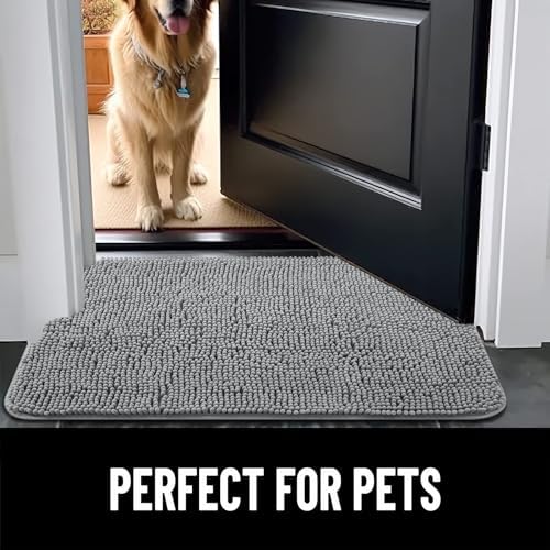 [LUXURIOUSLY SOFT CHENILLE] Treat yourself and your furry friends to unparalleled comfort with the OLANLY Chenille Dog Door Mat. The premium plush pile offers a soft, cozy feel under your feet and provides extra warmth for your pets on chilly floors. Expertly crafted for enduring quality, this mat effortlessly blends opulence with durability. [ABSORBS MOISTURE AND DIRT] OLANLY indoor dog mat for muddy paws is crafted to efficiently remove dirt and swiftly absorb moisture. With our doormat, your shoes will be instantly free of any water, dust, grit, muck, sand, sleet, grass, slush, rain, or snow upon entering the house. It's an excellent choice for use as an entryway door mat, a welcoming door mat, or a dirt-trapping mat. [ANTI-SLIP TEXTURED RUBBER BASE] OLANLY's mud mat for dog paws is equipped with a sturdy, textured rubber backing to prevent shifting and slipping. For optimal performance, avoid placing the mat on a damp surface and ensure the floors beneath the mat are completely dry. [LOW PROFILE AND EASY CARE] OLANLY's Chenille Dog Door Mat boasts a slim 1-inch profile, offering a sleek and streamlined appearance. The thoughtful design ensures your doors won't get stuck, and the mat stays securely in place. Cleaning is a breeze – simply shake off any dirt or debris, or toss it in the washing machine for a deeper clean. It dries quickly, so you can be sure it's ready to use again in no time. [VERSATILE FUNCTIONALITY] Embrace the joy of your furry companion without the worry of mess. OLANLY mats are perfect for use indoors, outdoors, in a crate, or in the car. They're ideal under food and water bowls, after baths, and for various other purposes. Whether you're at home or on the go, we've got you covered!