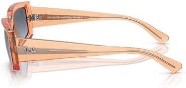 FRAME FEATURES: RB4395 sunglasses feature a square, transparent orange frame and blue gradient grey lenses. Made with sustainable bio-based acetate. SUSTAINABILITY: Bio-based acetate frames have 65% bio-based carbon content representing ratio of renewable sources such as cotton, wood pulp, cereals, beet and sugar cane to fossil sources. Bio-based nylon lenses have 40% bio-based carbon representing ratio of castor oil to fossil sources. 100% UV PROTECTION: To protect your eyes from harmful UV rays, these Ray-Ban sunglasses include lenses that are coated with 100% UV protection. CASE & CLEANING CLOTH INCLUDED: This pair of Ray-Ban sunglasses come with dedicated sustainable packaging, made with recycled materials. VISIT THE RAY-BAN BRAND SHOP: Click on the Ray-Ban link above the product title to shop the entire Ray-Ban sunglass and eyeglass assortment. #655,236 in Clothing, Shoes & Jewelry ( ) #5,676 in