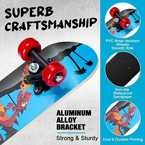 Ideal for Kids: our toddlers skateboard measures about 17 x 5 inches/ 43 x 12.5 cm, and only weigh about 1.76 lbs, with a bearing capacity of up to 33 lbs; Our bike safety gear kids include 2 pieces of knee pads, 2 pieces of elbow pads and 2 pieces of wrist guards in small size, applicable to kids Safe and Protective Gear: our protective bike gear kids are designed with adjustable elastic bands, comfortable and quick to wear, and provide good protection during sports; Its EVA foam material is light and breathable, nice for impact buffering, meanwhile making cool air flow and limiting sweat, bringing children a better use experience Reliable Material: our baby skateboard is mainly made of maple, firm and thick material, with adoption of PVC and PU wheels, reinforced with aluminium alloy post for further fixation, which can offer you with better balance control and shock absorption, nice for street and sidewalk cracks for a smooth sliding and riding experience Sweet and Distinctive Gifts: our skateboard pads and skate board for toddlers are practical, yet bringing more fun, and they are warm presents for your babies on children's Day, birthdays, Christmas, parties and other activities, and they will be very surprised and deeply touched Cool Design: our skate board for toddlers is printed with a beach pattern, adopting heat transfer printing process for long term use, waterproof without fading, no need to assemble; Our safety gear comes in classic blue and white color, making your kids dress up as a cool boy or girl when playing; They are ideal for roller skating, cycling, ice skating, rolling, ATV, BMX and other sports activities