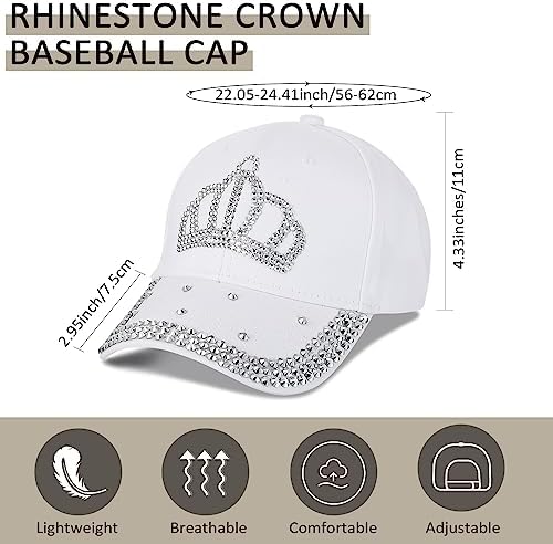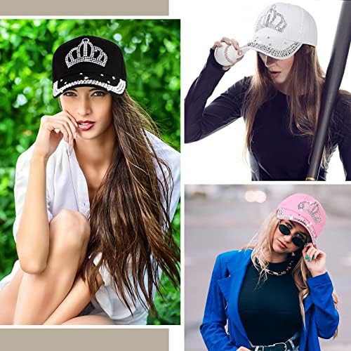 Jeyiour 3 Pcs Rhinestone Women Baseball Cap Bling Crown Hats Adjustable Girl Baseball Cap Cotton Jeweled Hats for Women Denim Golf Jeans Sun Hats for Cowboy Ball Gifts Costume Accessories