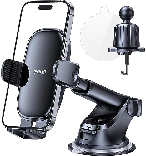 Anti-UV Film Only for Windshield Install: We developed the unique windshield Anti-UV film, with this film's help. This suction cup phone mount will never melt & fall off and keep your window clean away from ugly marks in the summer heat. Patented Tap-button & Single Gear Release: Tap not press that means you get a quick interaction & quick release. Anti-leaning Silicone Pads: With these textured silicone pads, the side grips work better to catch your phones. Dash Pad Mounting Disk Only for Dashboard Install: Has a diameter of around 2.76 inches, applicable to most car dashboards on the market. No tools are required for dash installation. Easy One Pull-Push Patented Mechanism: Say goodbye to screw adjustment hassle, with the OQTIQ telescopic arm, which can be extended from 4.2 to 5.8 inches in seconds while pull and push adjustment. It’s very convenient to adjust the distance between you and the holder, always within reach.