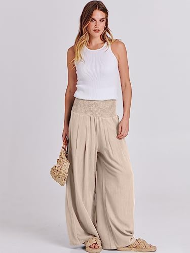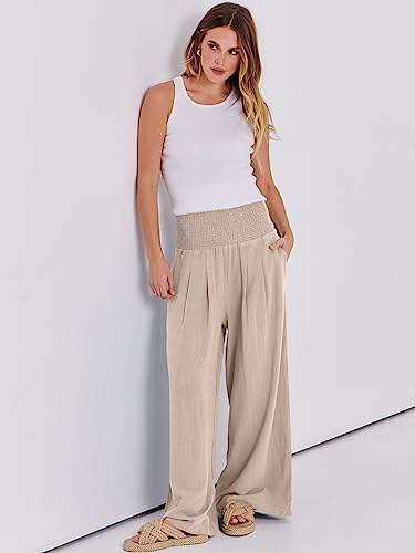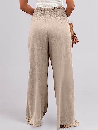 ANRABESS Women Linen Palazzo Pants Summer Boho Wide Leg High Waist Casual Lounge Pant Trousers with Pockets