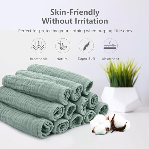 100% Cotton 100% COTTON - Made of pure natural muslin cotton. The fluffy structure of the cotton muslin fabric provides absorbs water and does not penetrate quickly effect. PACKAGE CONTENT - 12 pieces muslin burp cloths, 20 x 10 inches. They are also lightweight and breathable, making them ideal for use in any season. NEWBORN ESSENTIALS MUST HAVES - MULTI-PURPOSE ITEM FOR BABIES – our muslin cloths are so versatile and can be used in a multitude of ways. Perfect for protecting your clothing when burping little ones, wiping up sticky messes, as a breastfeeding cover up, for teething, dribbling babies or even as a changing mat cover when out and about to keep the area hygienic. PREMIUM QUALITY BABY STUFF - SWEET DOLPHIN muslin cloths will be your favorite daily essentials as reusable baby wipes, cloth diapers, baby face towels, body washcloths, facial cloths and anything else that's available. An ideal size to pop into a handbag or changing bag and can be used all around the home as they come in super handy when feeding, changing or even cleaning baby. PERFECT BABY SHOWER GIFT - Top of the baby registry items, this is an essential item for new parents, the more the merrier where burp cloths are concerned! Our burp cloths are highly absorbent, durable, and machine-washable, ensuring that they can handle all of your baby's messes and last through multiple washes.