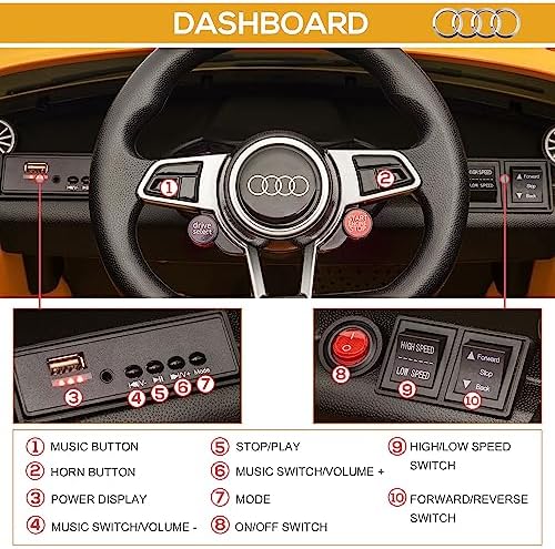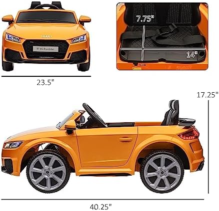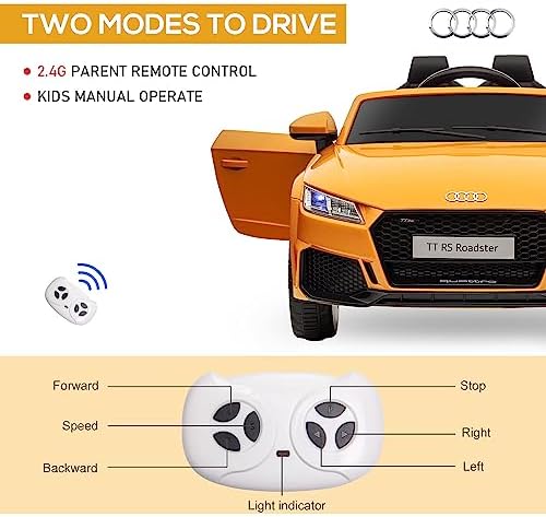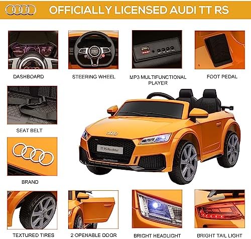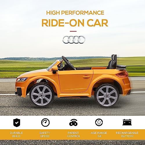 Aosom 6V Kids Electric Ride On Car, Licensed Audi TT RS with Suspension System and Remote Control, Horn, 5 Songs, Lights, MP3 Player - Yellow