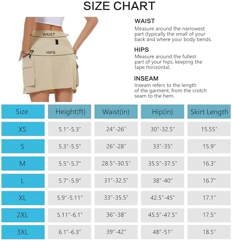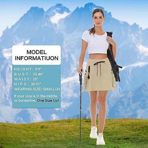 【Are Skirts Good for Hiking?】Skirts for hiking provide a fun flow to your outfit. Additionally, they provide greater range of motion, as well as enhanced breathability and air flow, the compression inner shorts designed to prevent chafing through long time hiking trip 【Ample storage space】2 zippered pockets and 2 large velcro pockets making this skort truly a cargo, the front loop design can easily hang compass or other hiking essentials The durable polyester and spandex blend fabric result in a lightweight, moisture wicking, quick dry trail skorts;16 inch length accommodates a higher step won't encumber your stride Soft and flat wide waistband with external drawstring for adjustable fit and added stylish; the "A" line hem design brings a flattering silhouette Durable water repellent treatment helps moisture bead up on the surface, UPF 50+ fabric provides maximum sun protection against harmful ultraviolet rays equally suited for travel, hiking, golf, tennis or for your daily casual wear #12,294 in Clothing, Shoes & Jewelry ( ) #30 in