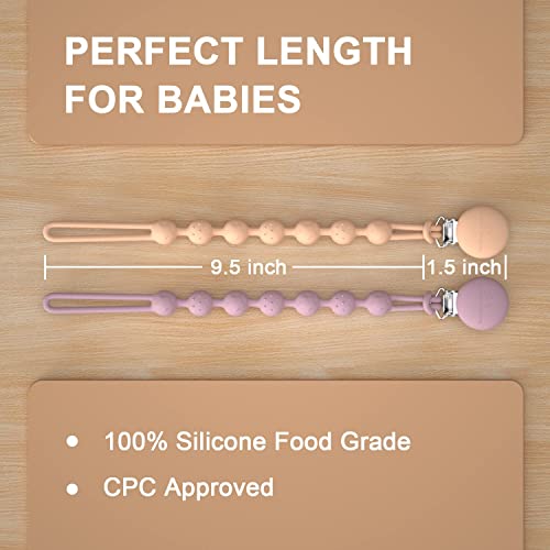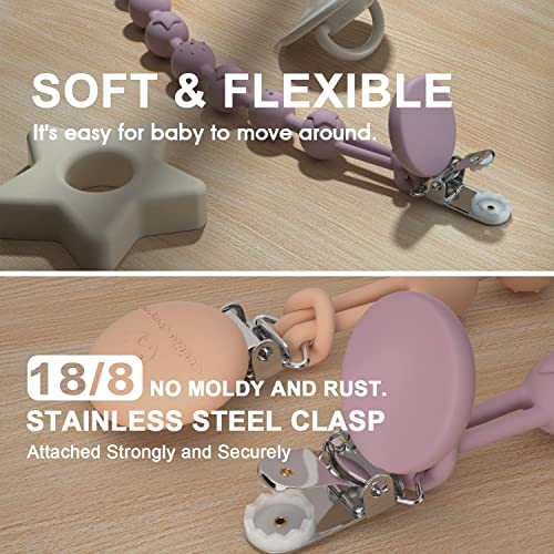 Cuddle Campus Silicone Pacifier Clip Holder with One Piece Design, Pack of 2 Soft Flexible Binky Clips with Texture for Baby Boy and Girl(6m+)