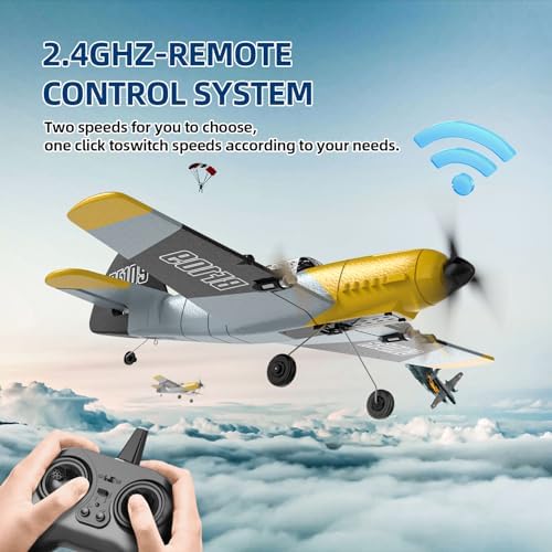 DEERC RC Plane 3 Channel BF-109 Remote Control Airplane Fighter Toys,2.4GHz 6-axis Gyro Stabilizer RTF Glider Aircraft Plane with 2 Batteries,Easy to Fly for Adults Kids Beginners Boys