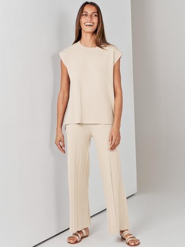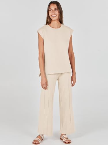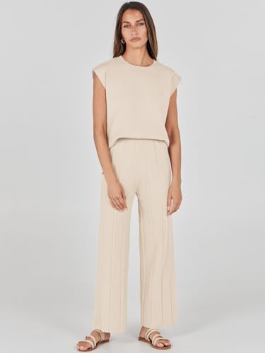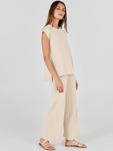 ANRABESS Two Piece Outfits for Women Summer Sweater Sets Knit Pullover Tops Elastic Waisted Pants Lounge Sets Tracksuit