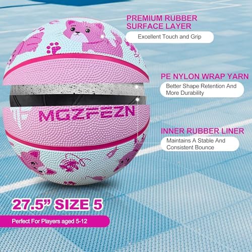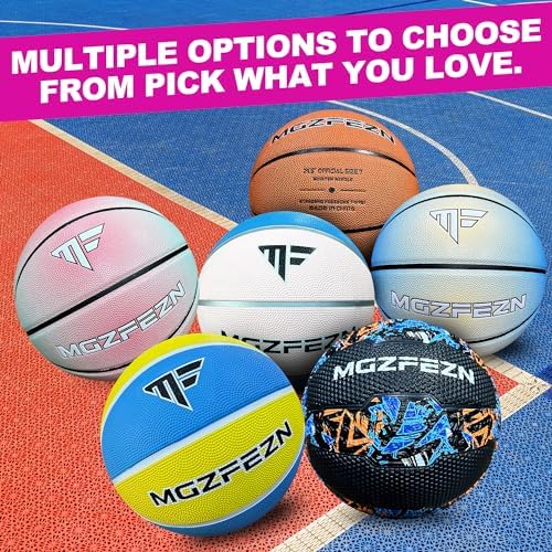 MGZFEZN Youth Basketballs Size 5(27.5"), Rubber Game Basketball for Play School Games Indoor, Outdoor Park, Beach & Pool with 1 Pump 1 Net Bag and 1 Gift Box