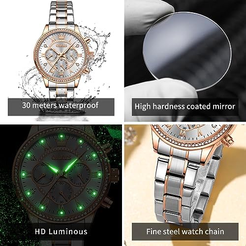 OLEVS Watches for Women, Fashion Dress Womens Watch, Waterproof Analog Quartz Stainless Steel Wristwatch, Elegant Birthday Gifts for Women Ladies & Girls