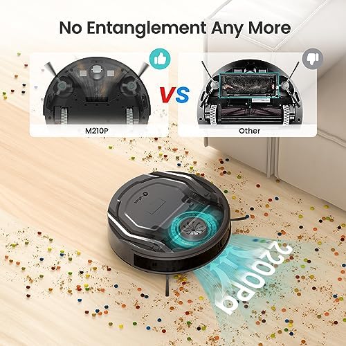 From 2019 to 2023, Lefant Robot Vacuums iterates from model M201, M210 to the third generation M210 pro with stronger suction, softer sound, easier Wi-Fi connectivity, higher recharging rates, and more durable batteries! Ideal For Pet Owners: With its uniquely designed tangle-free suction port, the M210Pro robot vacuum can pick up dust, pet hair, and debris effectively on hard floors and low-pile carpets without tangling. Slim Design: With only 2.99"x 11" body, the vacuum robot is capable of running under beds and sofas where dirt hides. Double Edge-Sweeping brushes ensure every corner & edge is cleaned without missing. 6 Cleaning Modes: The robotic vacuum can flexibly switch between different modes via the APP: ➊Zig-zag cleaning➋Random cleaning➌Spot cleaning➍Cleaning along the wall➎Schedule cleaning➏Manual cleaning. Anti-collision& Anti-fall: The M210Pro has 13 pairs of built-in upgraded infrared sensors, which make it effectively detect the 720-degree environment of the fuselage and avoid getting stuck and falling downstairs. Auto-recharge: The M210Pro can run up to 120 minutes on a single charge(Quiet mode). When the cleaning task is finished or there is only 15% of the battery left, The robot will automatically return to the charge station. Easy Control: Control your robot via button/APP/Alexa/Google Assistant or Remote (search"B0BZYZN12Q"to purchase). Schedule a cleaning with the Lefant App even if you're not at home.