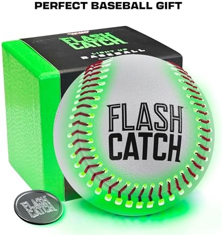 LIGHT UP YOUR GAME: Impact-activated LED Technology ensures every catch and throw is illuminated. Experience a dazzling display with every play, perfect for night games! EASY, HASSLE-FREE OPERATION: Plug & Play design for effortless setup. Simply unscrew the cap, insert the A23 battery (spare included), and you're ready to go. No charging required! OFFICIAL PLAY FEEL: Enjoy the authentic baseball experience. Official size, weight, handmade stitches, and genuine cow leather for the best grip, mirroring professional baseball standards. DURABLE & HIGH-QUALITY: Built with premium materials and rigorously tested for durability and performance. Designed to withstand countless hours of play, ensuring long-lasting fun. IDEAL GIFT FOR BASEBALL FANS: A perfect gift for baseball enthusiasts of all ages. Enhances night-time play, making it a unique and exciting present for any occasion. SAFE & FUN FOR CATCH: Specifically designed for playing catch, this ball is not meant for hitting. Enjoy a safe, fun, and innovative way to play your favorite sport. ADVENTURE-READY: Whether a backyard game or a camping trip, the FlashCatch Light-up Baseball is your go-to companion for endless fun, day or night. Ready to light up your sporty adventures!