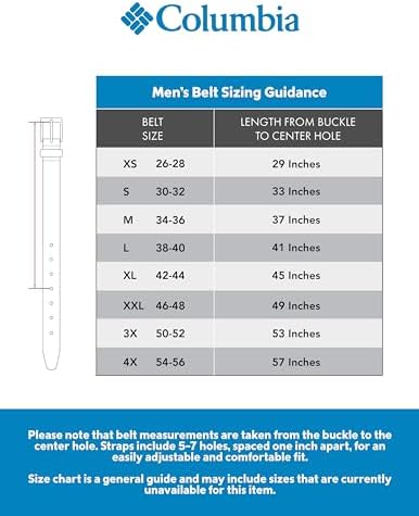 REVERSIBLE CONSTRUCTION: The reversible design has a rotative square buckle with an engraved Columbia logo that you can reverse with ease. Simply pull up the buckle at the hinge while rotating it and put it back in place to use your belt one way or another. STYLE: This 2-in-1 versatile belt from Columbia offers up double the styling options while buying just one belt. The casual design of this roller buckled belt is perfect to be paired your favorite pair of khakis or jeans. SIMPLE SIZING: For best fit, order a size 2" larger than your waist size. If your waist size is 36" then order size Large (38-40). Available in sizes Small (30-32), Medium (34-36), Large (38-40), and X-large (42-44). DESIGN FEATURES: Belt strap width measures 1.5 inches to easily fit through your belt loops. Features a smooth sturdy belt strap and classic english tip shape. COLUMBIA QUALITY: Columbia is a trusted and recognized American brand. Our products are made to fit your day to day activities, but also when you grab your bag to go on an adventure. When buying a Columbia product, you know that you are buying quality #113,899 in Clothing, Shoes & Jewelry ( ) #531 in