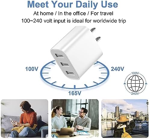 【3-USB Charging Ports】USB wall charger block is designed with 3 USB ports in one cube, allowing you to charge multiple devices simultaneously. Whether you need to charge your smartphone, tablet, smartwatch, or other USB-powered devices, eliminating the need for multiple chargers. 【Universal Compatibility】This is a 3-port USB charging cube that works universally for nearly all devices. The usb wall plug is compatible with iPhone 14/13/12/11 Pro Max, Mini, SE, XR, XS MAX, XS, X, 8 Plus, iPad Pro, iPad Air, iPad mini, Samsung Galaxy and more USB-ported devices. 【Fast Efficient Charging】USB charger block delivers an even output: 2.1A 5V, which ensure a fast and efficient charging to your devices. Not only saves your charging time, but always ensuring that you have a fully charged device. 【Pack of 3 & Portable】You are getting 3pcs USB power adapters, so you can bring one in office, one at home and one for travel. It’s lightweight and compact, which can be easily carried in a bag or pocket, allowing you to take it with you wherever you go. 【Reliable Quality & Safety】The wall chargers with ports are well built for long lasting service. Protecting your devices from overcharging, overheating, and short circuits. Let you rest assured that your devices being charged safely. Any issues during charging, please don’t hesitate to contact us for satisfactory solution.