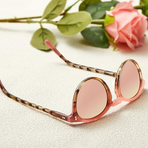 CARFIA Fashion Round Sunglasses for Women Small Face Polarized UV400 Protection Retro Designer Hand-crafted Acetate Frame