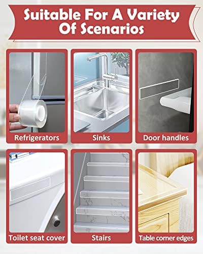 ?【Super Adhesion and Safety】This excellent edge protector is made of innovative eco-friendly nanomaterial, which is non-toxic, non-slip, extra sticky, soft, and highly elastic, not easy to deform, and safe for humans. Our edge protectors are the perfect gift for your baby. ?【Soft and Transparent】The child safety edge protectoris size 0.8in x 6.6ft, 0.08in thick. Our baby edge protectors are completely transparent to maintain the original appearance of the furniture while providing safety and protection for your baby and child. With a protective edge layer that will not tear easily. ?【Lasts Long Time】The material of our table edge protector has been improved to adhere better and last longer on the furniture, and does not peel off easily. At the same time, it is easy to remove and does not damage the furniture. NOTE: Cement walls, white plaster walls, and other uneven surfaces should not be used. ?【Easy to Install and Remove】With the pre-installed adhesive strips, everything is easier and faster. Cut it to the size you want, place it on a clean surface, stick it on, and smooth it with your hands. Heat it with a hair dryer before removing it and tear it off slowly to prevent furniture from tearing. ?【Suitable for Many Scenarios】Edge protector can be applied to home security guards, refrigerators, sinks, stairs, fireplaces, tables, furniture, beds, kitchen units, bedrooms, TV cabinets, stoves, and more, great for many kinds of furniture with different shapes at home or school, day care centers.