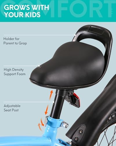 【Design for Kids 】1. This 16 inches kids bike comes with stable training wheel early. 2.Quick release seat simplify the height adjustment. 3.Saddle with holder to learn riding when the training wheel is off. 4.Foot brake suitable for young rider don't have enough power to manipulate the hand brake. 【Safe for Kids】Our kids bike bell around the handle and reflectors in many places, making it easy to drive during the day and at night. Detachable training wheels allow your child to ride a bicycle smoothly from beginner to being able to ride. Fully-enclosed Chain, effectively prevent clothing and other things involved in the chain resulting in child injury. 【Minimum Maintenance 】Made of premium steel to survive the bumps of learning, the durable steel frame is backed by our limited lifetime warranty. The kids bike comes with black tire & single speed, only little maintenance needed due to the simple design. 【Easy to Install】The 16" kids bike comes with 85% Pre-assembled body and the basic assembly tools, only pump needed for tire, normally takes a novice about 20 minutes to assemble the bike. If you have problem about assembly the bike, please contact us. 【Ideal Gift Choice】The kids bike with training wheels is perfect for beginner riders 41"-46" tall. Helping boys and girls age 4 to 10 years old learn to ride with confidence and fun.