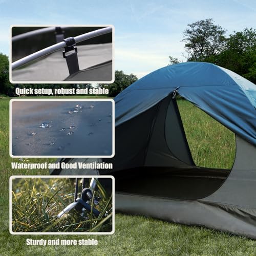 【High Quality Fabric】ShinHye Camping Tent materials are made of high-grade materials,190T polyester fibre + 210D Oxford fabric + B3 net,Fine workmanship,adopt ShinHye waterproof technology to seal seams,equiped rain fly to cover on top of tent,double layer Increase waterproof performance 【Unique Design】ShinHye Camping Tent is designed in 2 sizes, 2-person tent and 4-person tent, with a variety of sizes to choose from ,spacious and comfortable movement,suitable for couples and family outings. 【Quick Setup】Very fast to pop up and take down,The two aluminum poles make the lightweight mountaineering tent quick and easy to set up, even for one person.Packed Size: 16.9''x5.9''x5.9'', easy to put in one’s backpack. 【Ventilation design】2 large door for enhanced airflow and open view,The inner gauze net will protect you from bite in summer,Tent comes with alloy hooks and windbreaks,so it can be used firmly on windy days. 【Multi-functional】ShinHye Camping Tent with a double-layer design, the tent is the first choice for hiking, family outings, fishing, mountain camping, car camping, backpacking or biking.