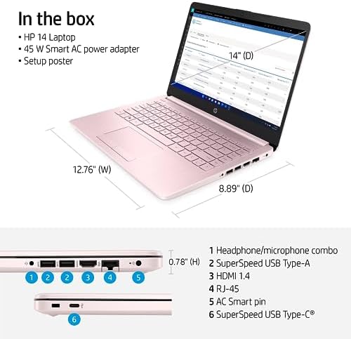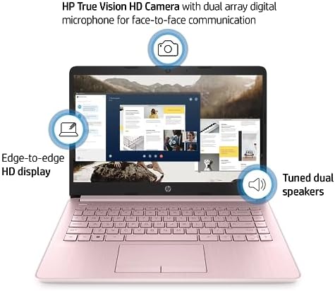 HP Portable Laptop (Include 1 Year Microsoft 365), 14’’ HD Display, 8GB RAM, 64GB eMMC, Intel Quad-Core N4120, Student and Business, Webcam, HDMI, Wi-Fi, RJ-45, Windows 11 Home, Pink (Renewed)