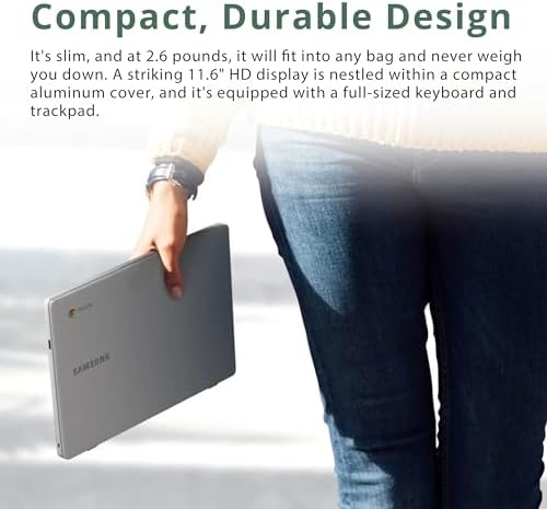 【11.6" HD LED Display】The captivating clarity and brilliance will surely enhance your work and entertainment endeavors. The energy-efficient LED screen ensures comfortable viewing, enhancing your visual experience to the fullest. Slim, under 3 pounds, and with military-grade durability. 【Intel Celeron Processor N4020 Processor】The low voltage design optimizes energy usage, allowing you to stay productive and entertained with great efficiency. Seamlessly multitask between study materials, stream your favorite entertainment content, and browse the internet smoothly without any lag. 【4GB DDR4 RAM】Plenty of high bandwidth to run multiple programs simultaneously without any slowdowns.【64GB eMMC】Massive storage space for your files, applications, and multimedia content, providing fast and reliable data access. 【Compact design】Ultraportable weight of 2.6 lbs. 【Intel UHD Graphics】Enjoy solid image quality that brings your everyday content to life with vibrant colors and sharp details. 【Chrome OS】Chromebook is a computer for the way the modern world works, with thousands of apps, built-in virus protection and cloud backups. It is secure, fast, up-to-date, versatile and simple.【Dimensions & Weight】11.33 x 7.96 x 0.66 Inches, 2.6 lbs.【Ports & Accessories】 1 x USB-C, 1 USB 3.0, 1 Headphone/microphone combo jack. WiFi 5 - 802.11ac, Bluetooth. 32GB Hotface USB Card.