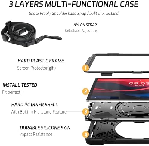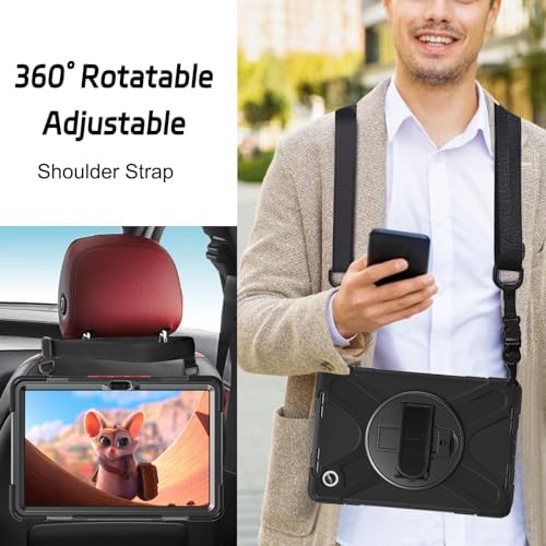 ZenRich Case for Lenovo Tab M11 (2023) TB-330FU | Lenovo Xiaoxin Pad 2024 11inch TB-331FC with Screen Protector Pen Holder | 3 Layer Shockproof Rugged Rubber Protective Case W/Shoulder Strap, Black
