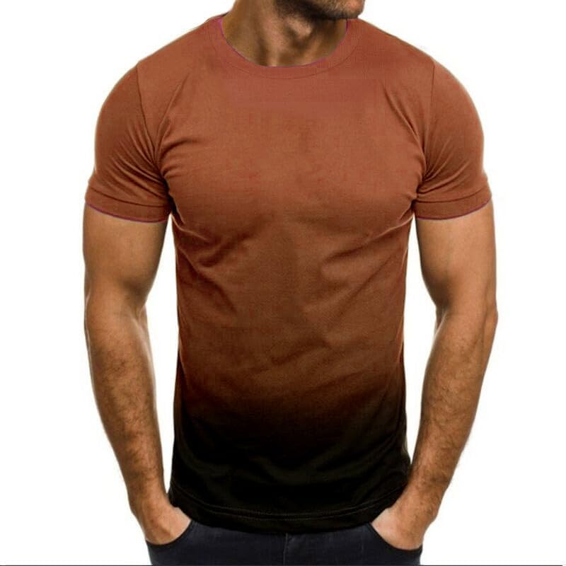 Muscularfit Workout Shirts for Men 2024 Fashion Gradient Color Short Sleeve Crewneck Loose Pullover Casual Summer Beach Shirt
