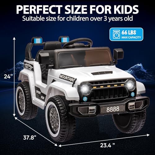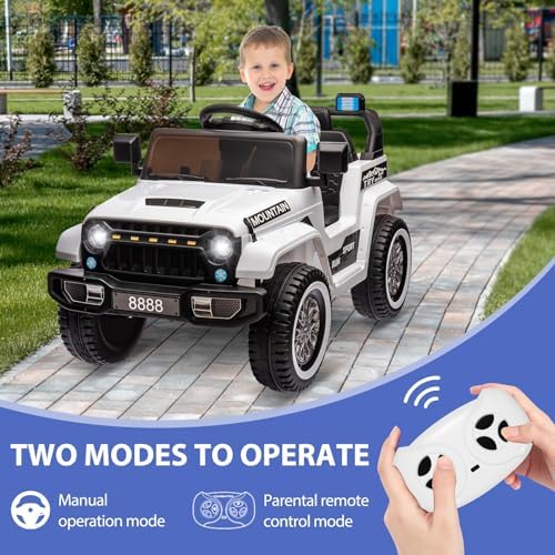 Jojoka 12V Ride on Truck Car, Kids Electric Car with Remote Control, Spring Suspensions, 3 Speeds, LED Lights, Music, MP3, Ride on Toy for Boys Girls, White